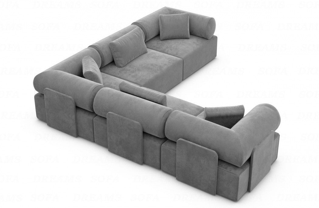 With four generous seats, this upholstered sofa offers ample space for family and guests to spend cozy hours together. The stability of the sofa is ensured by specially attached plates behind each castor, which give the sofa a solid base while emphasizing its luxurious appearance. As an additional highlight, five decorative cushions are included, which not only provide additional comfort but also perfectly round off the overall look of the sofa. With the Laguardia L-shaped sofa, you bring home a piece of furniture that is not only functional but also enhances your living space with style and sophistication. enriched.