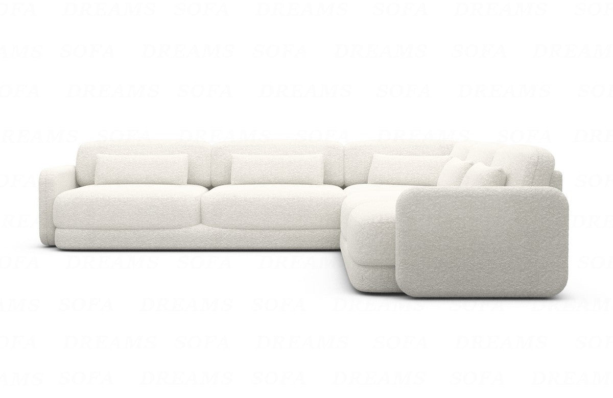 The Valencia upholstered corner sofa is available in three elegant upholstery fabrics to suit your personal style: velvet for a luxurious atmosphere, textured fabric for classic elegance, and boucle fabric for a modern, trendy look. The comfortable seat height and depth ensure that you immediately feel at home on this sofa. The sturdy armrests and backrests provide additional support and comfort, allowing you to relax without restrictions.