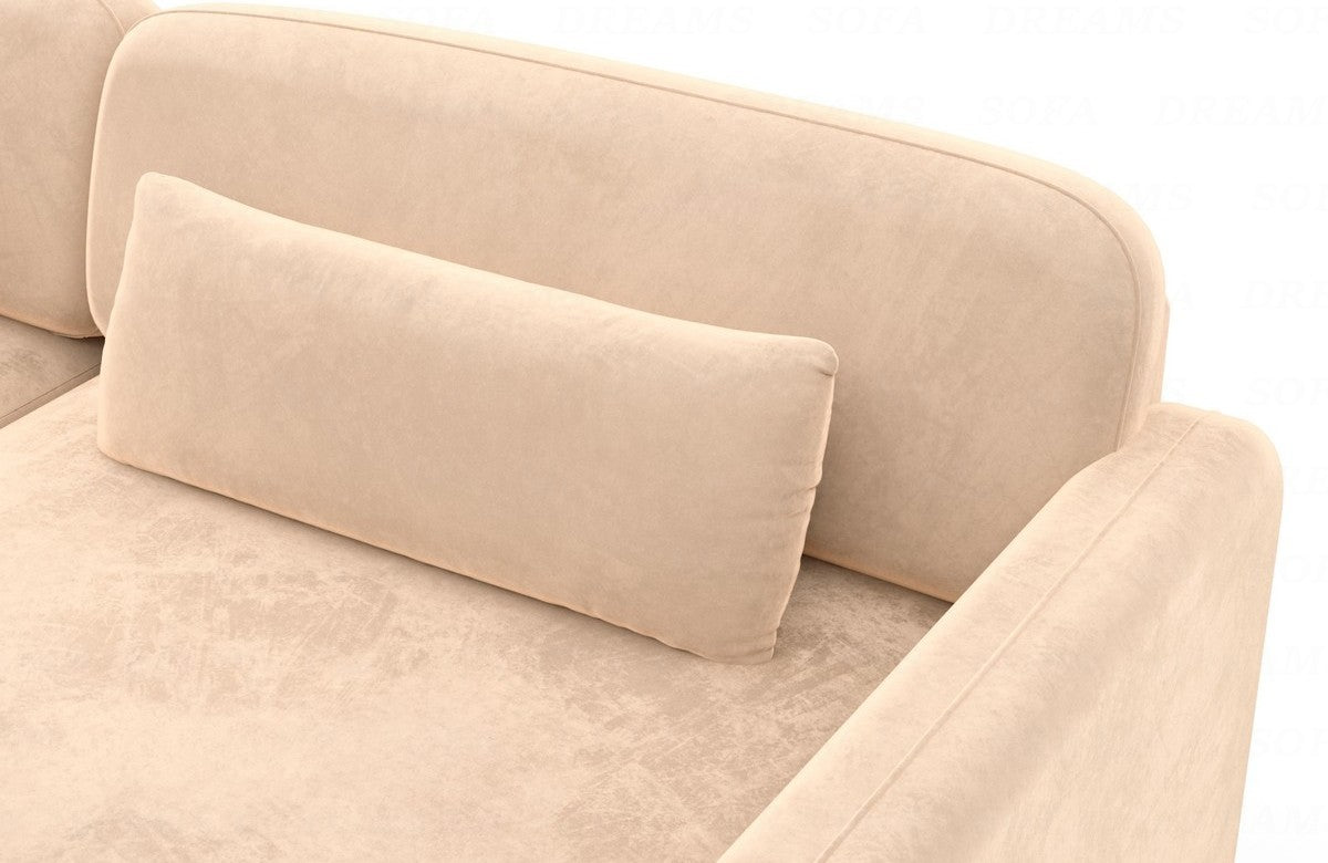 Features of the upholstered L-shaped corner sofa include: