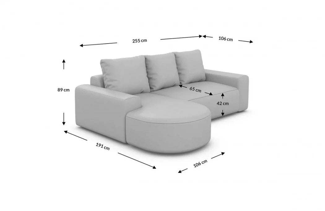 The Gomera L-shaped short fabric corner sofa comes with three stylish decorative cushions that not only offer additional comfort but also harmoniously round off the elegant design.