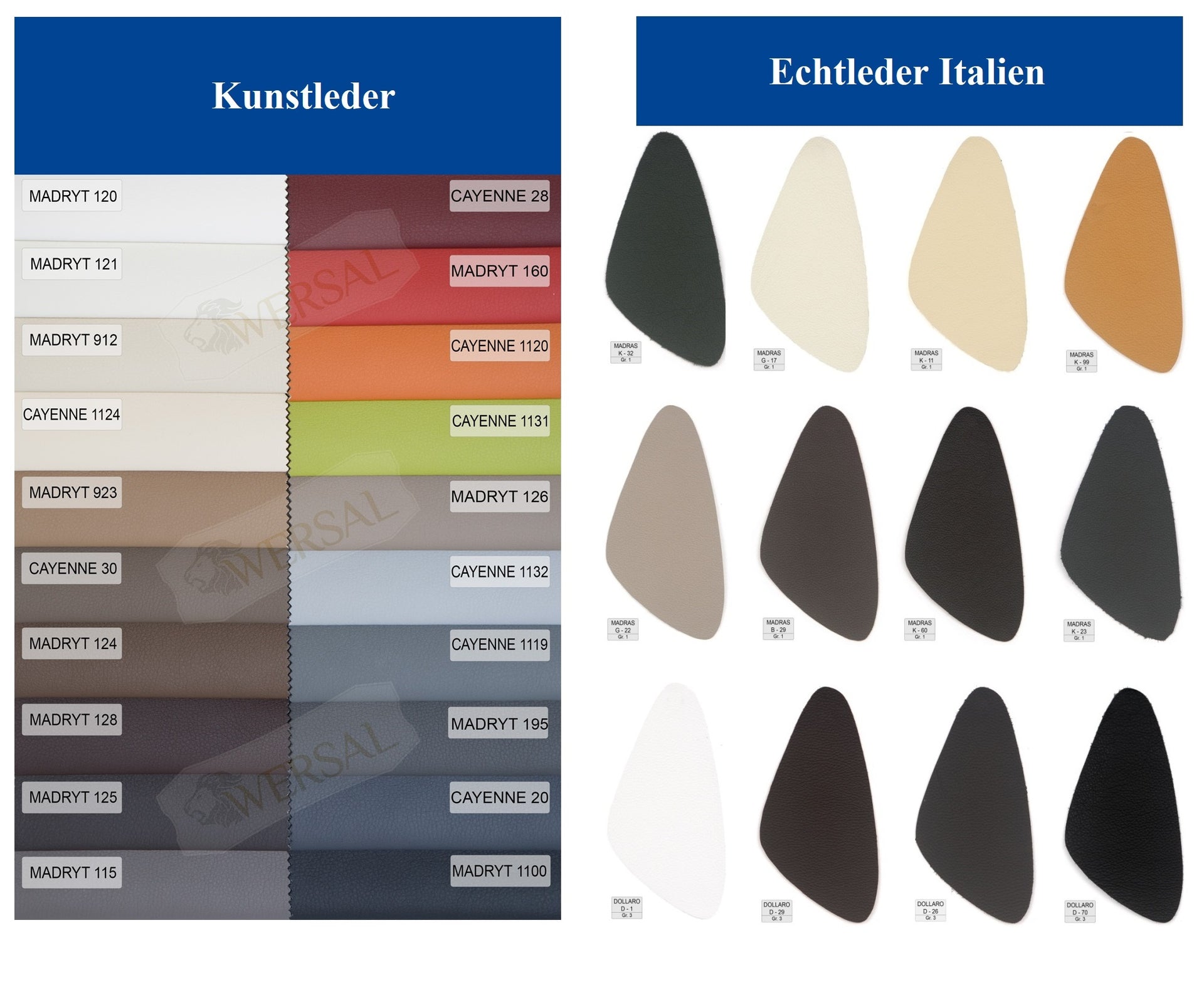 Material | Artificial leather standard, genuine leather Madras or buffalo leather Dollaro - see tab 'Material and Colors' |