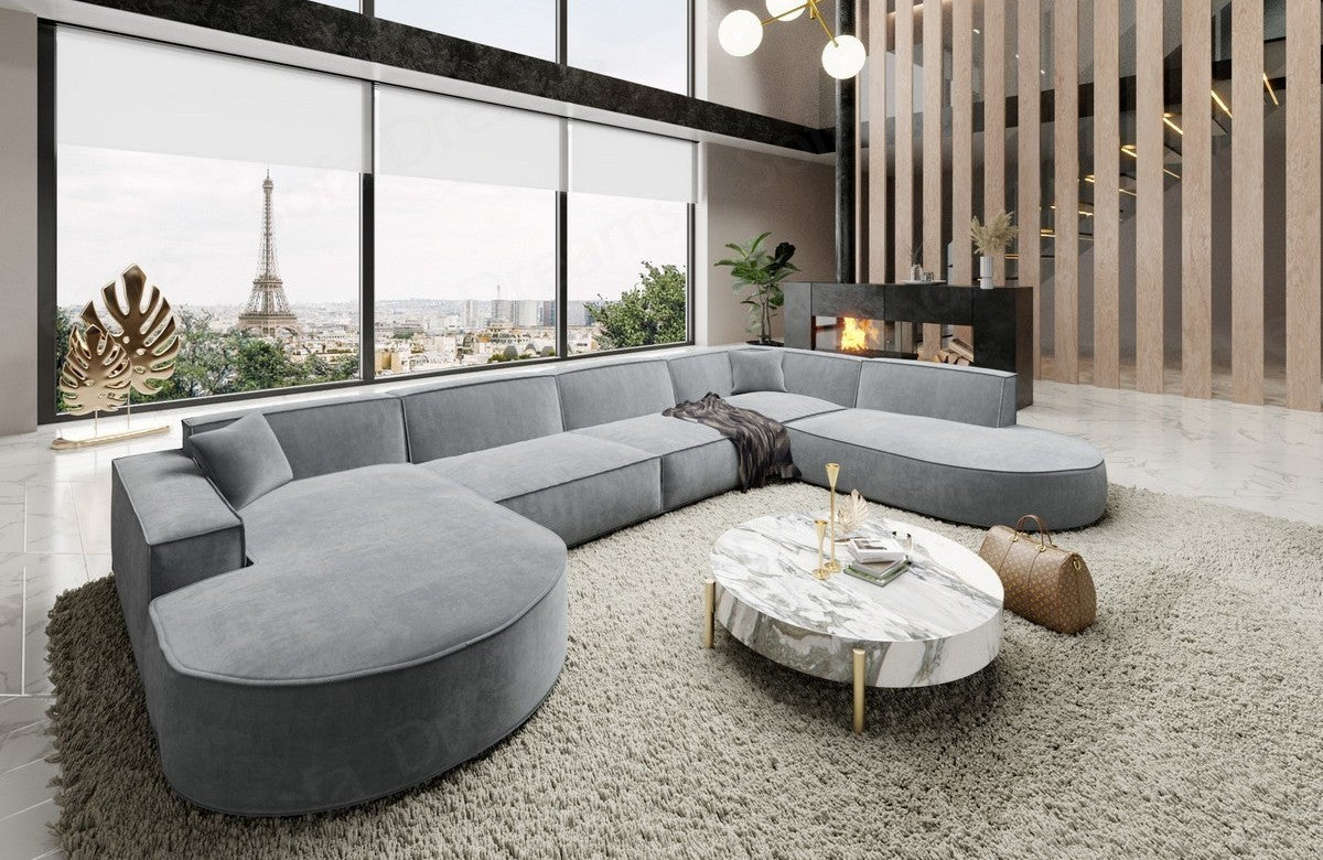 The Alegranza U-shaped fabric living area is the ideal choice for anyone looking for modern design in a simple, monochrome sofa. With two different fabric types and 24 color variations, you have plenty of scope to design your living area exactly as you wish. This allows you to create your own personal dream sofa. The high-quality springs not only ensure first-class seating comfort but also prevent the sofa from deforming over time. Discover the advantages of the temperature-resistant fabrics offered by this couch.