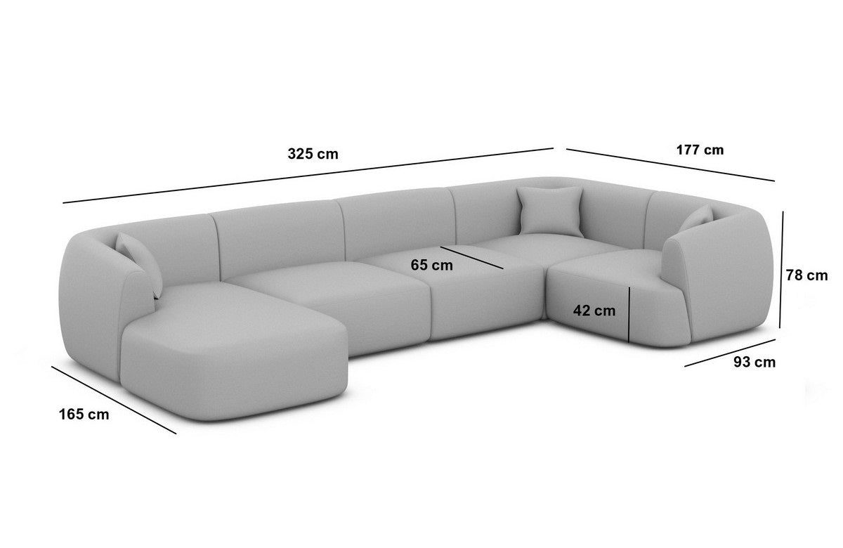 The Tabarca U-shaped upholstered living area with ottoman is a modern and versatile piece of furniture that brings both comfort and elegance to your home. With its generous U-shape and adjustable ottoman, this living area offers numerous design options for your living space.