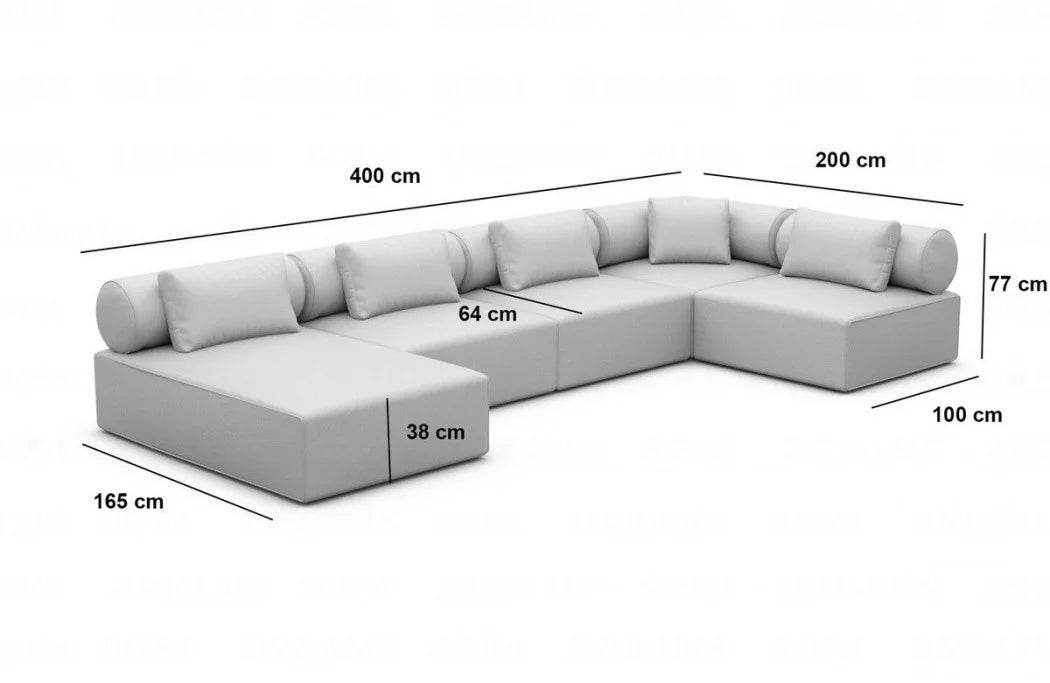 As a bonus, five decorative throw pillows are included to add the finishing touch to your Laguardia living area and create a stylish ambience that reflects your personality and taste. Experience comfort, functionality, and elegance in perfection with the Laguardia U-shaped fabric living area – the ideal addition to your home.