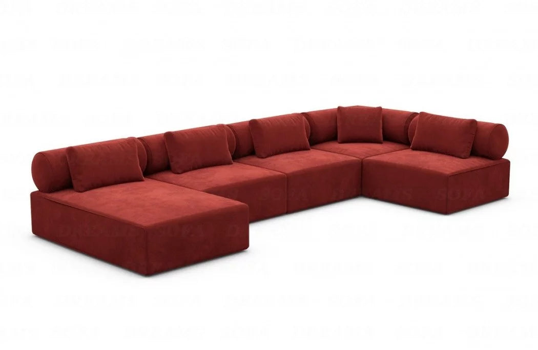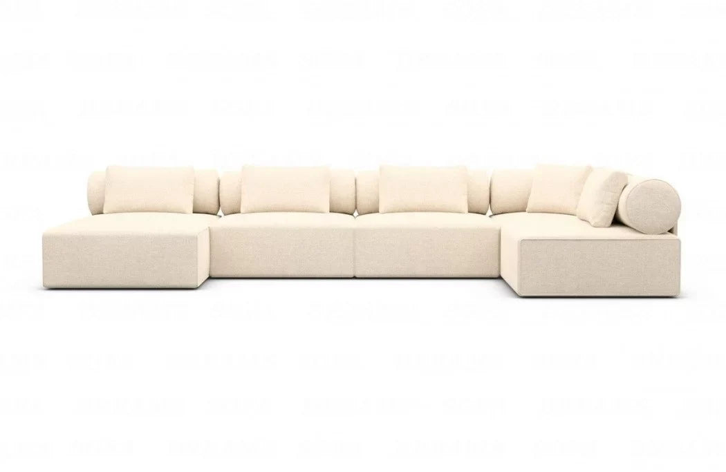 Immerse yourself in the ultimate in comfort and style with our exquisite Laguardia U-shaped fabric living area. With an elegant ottoman whose orientation can be freely selected to suit your taste, this sofa not only offers incomparable comfort but also maximum flexibility in your interior design. The Laguardia sectional sofa is available in three different high-quality fabrics, including velvety-soft velvet, robustly textured fabric, and luxuriously soft boucle fabric. No matter which fabric you choose, each material promises a comfortable seating experience of the highest quality.
