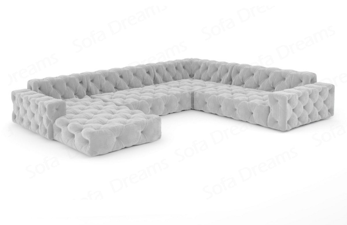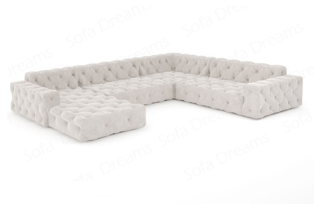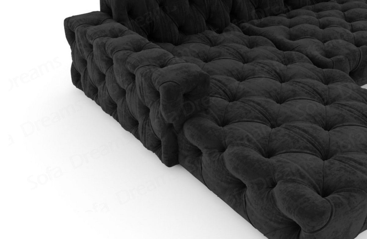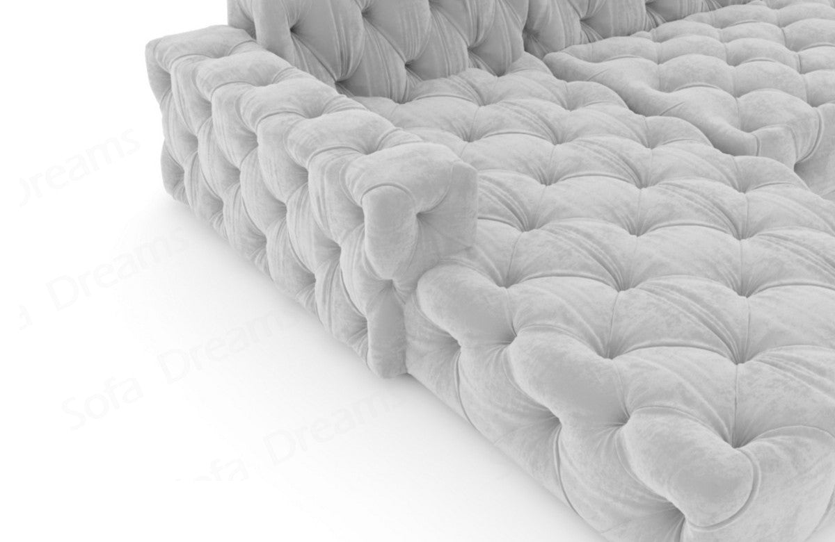 The Menorca upholstered sofa in U-shape with ottoman and its stylish Chesterfield design is the perfect living area for smaller rooms. Thanks to its compact dimensions, the sofa can be flexibly placed in your living room. You can choose between a velvet and a textured fabric cover for your new fabric sofa. We also offer 24 different colors so you can customize the sofa to your personal preferences. The high-quality springs not only increase seating comfort but also prevent the sofa from deforming, which can occur from frequent sitting. Experience the advantages that temperature-resistant fabrics offer.
