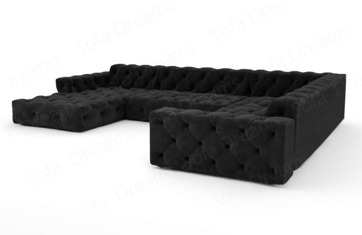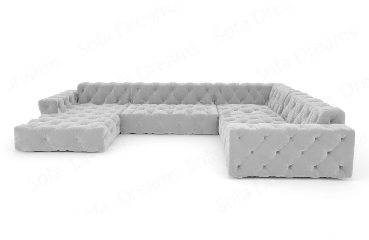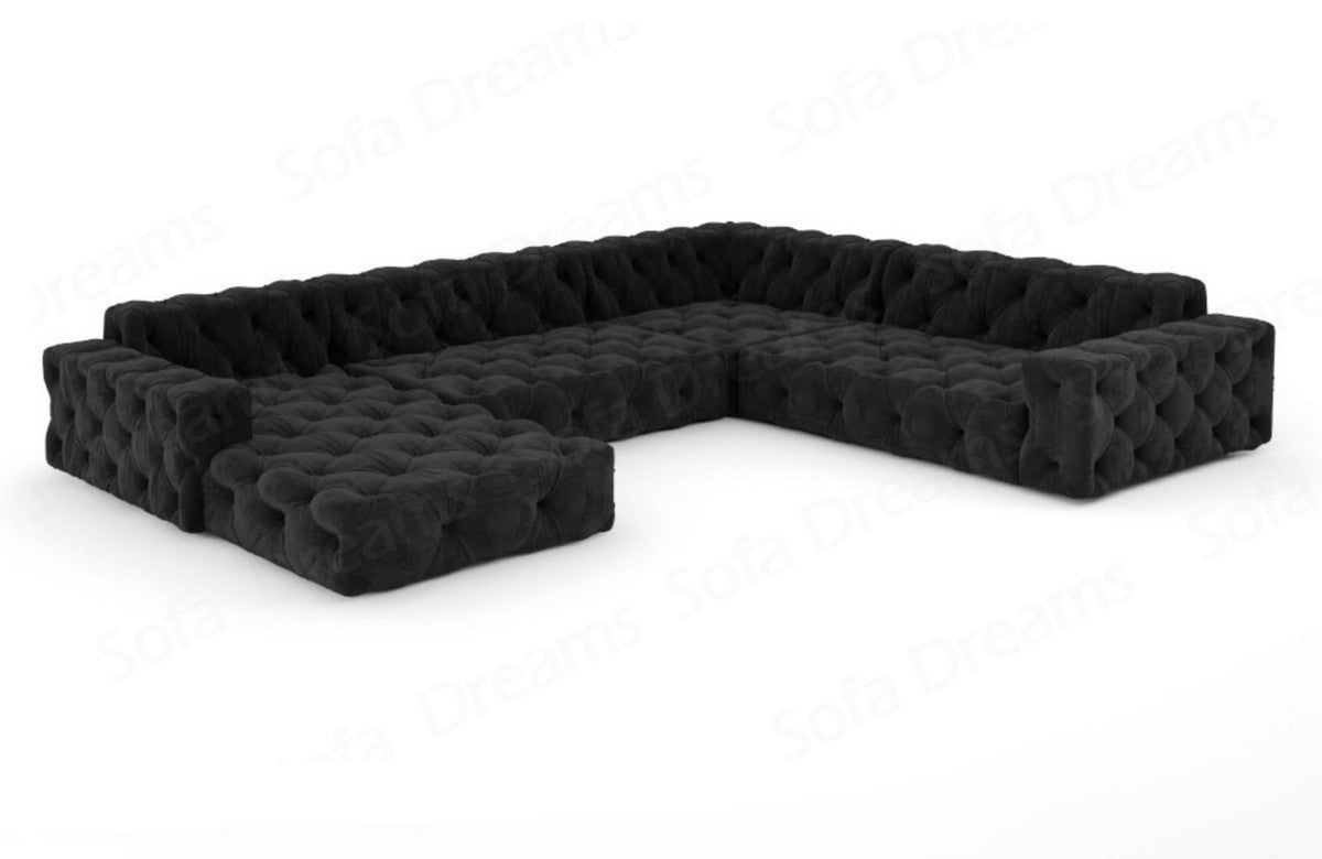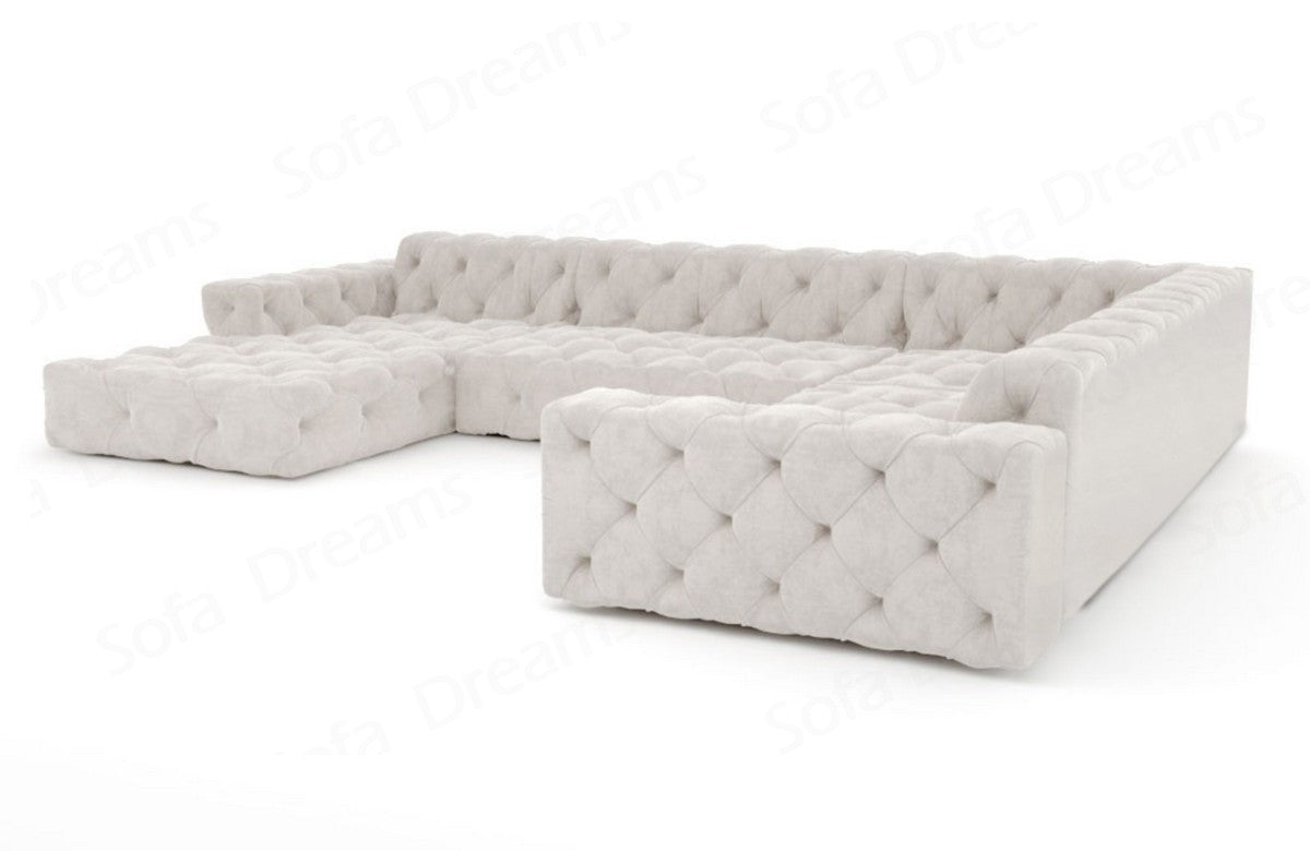 The Menorca upholstered sofa in U-shape with ottoman and its stylish Chesterfield design is the perfect living area for smaller rooms. Thanks to its compact dimensions, the sofa can be flexibly placed in your living room. You can choose between a velvet and a textured fabric cover for your new fabric sofa. We also offer 24 different colors so you can customize the sofa to your personal preferences. The high-quality springs not only increase seating comfort but also prevent the sofa from deforming, which can occur from frequent sitting. Experience the advantages that temperature-resistant fabrics offer.