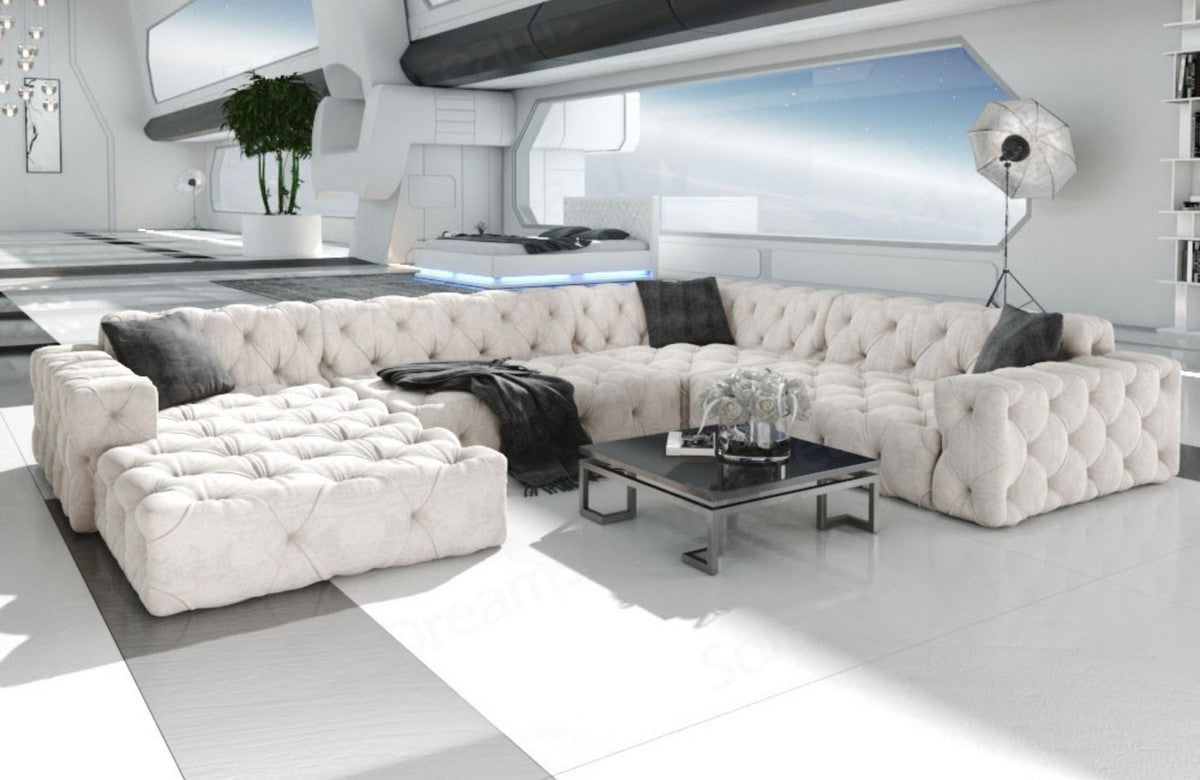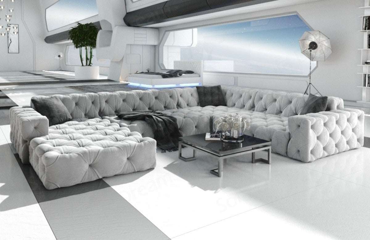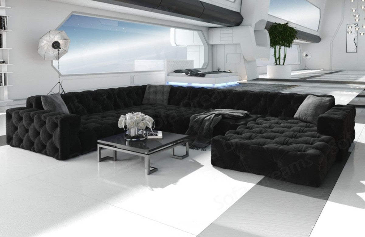 A fabric sofa has the advantage of being less susceptible to temperature fluctuations. It doesn't overheat in the summer and doesn't stay too cold in the winter. For the U-shaped couch, you can choose from two different seat covers, including the modern velvet fabric, which is also water-repellent. This fabric impresses with its easy care and high resistance to wear.
