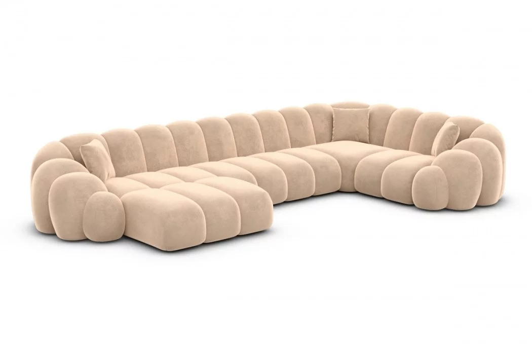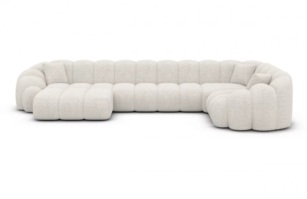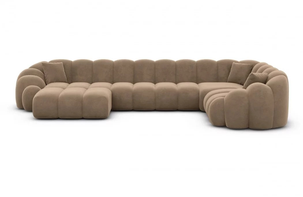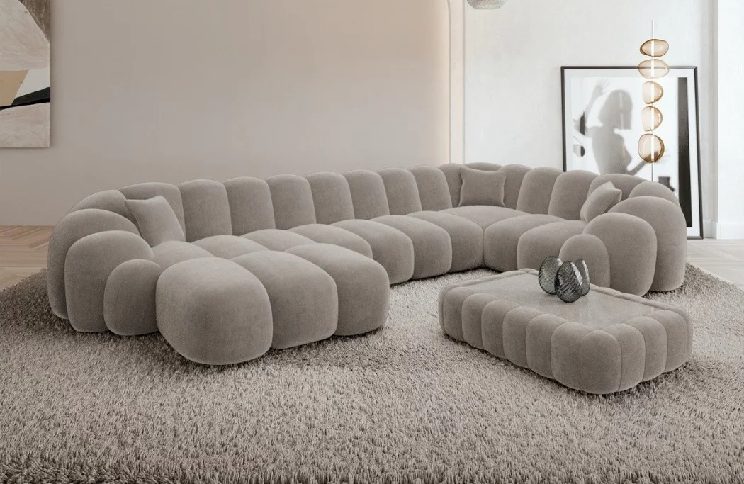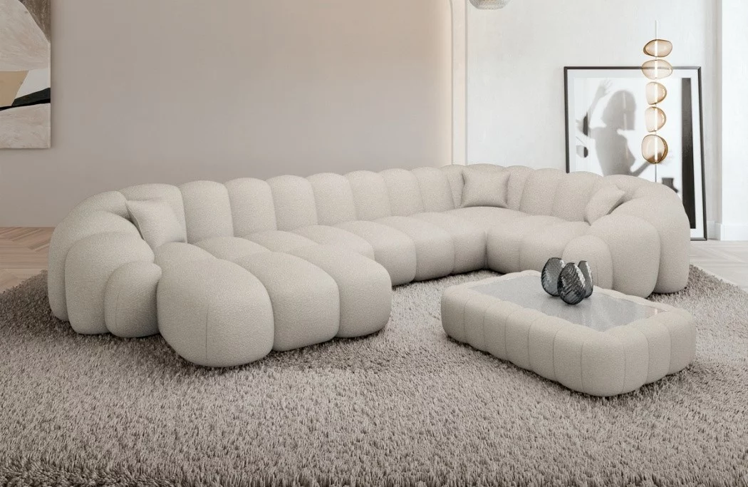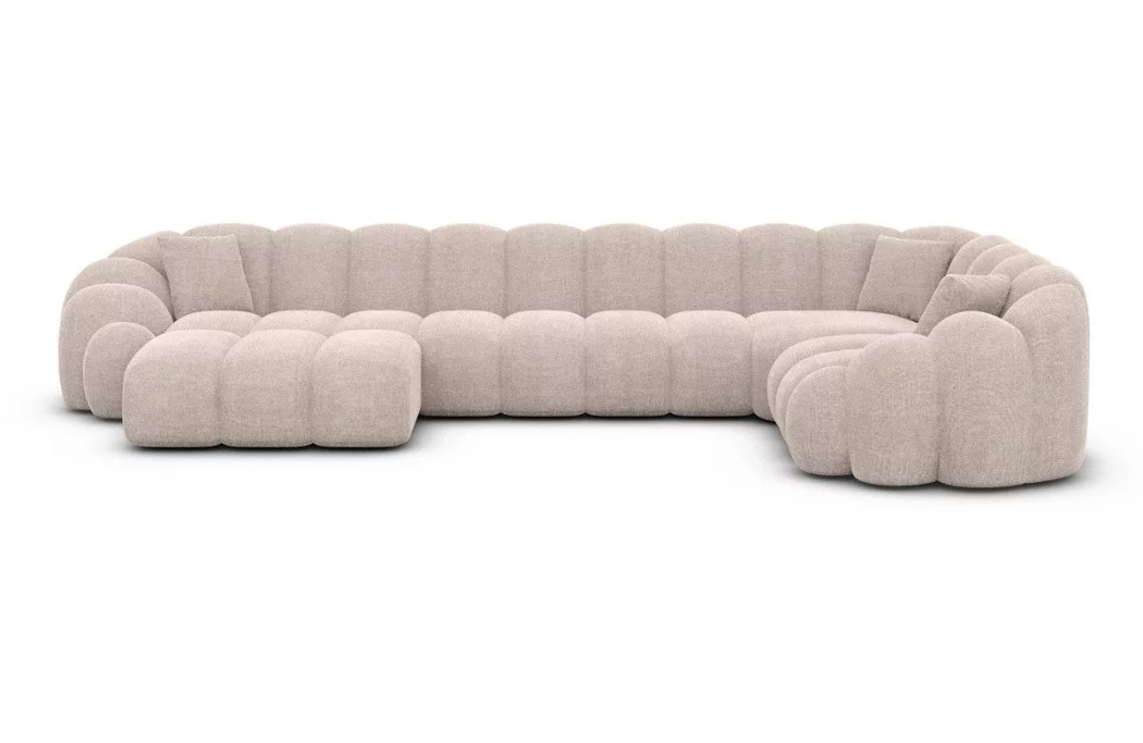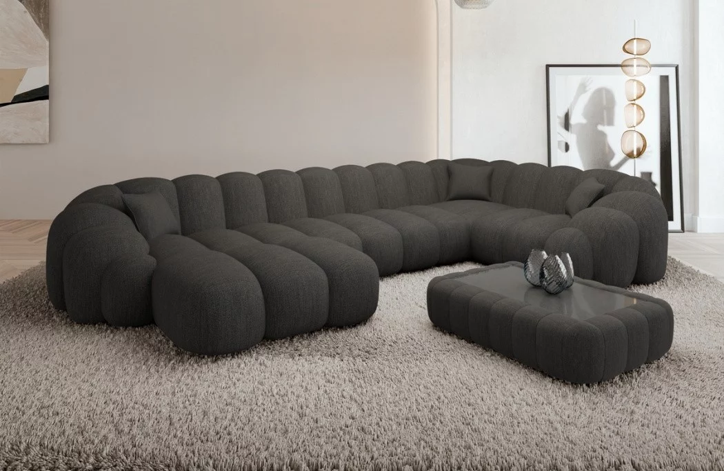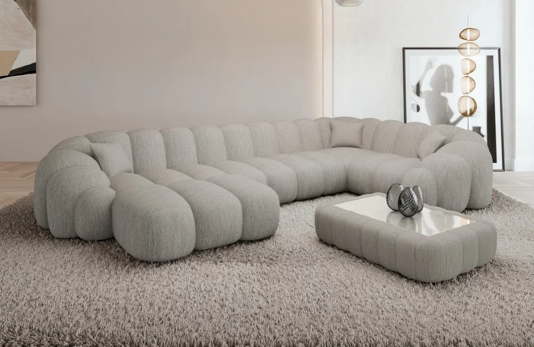 The Rajada U-shaped fabric living area combines elegant design, high-quality materials, and outstanding seating comfort. Choose your preferred upholstery fabric and color for a personalized living ambiance!
