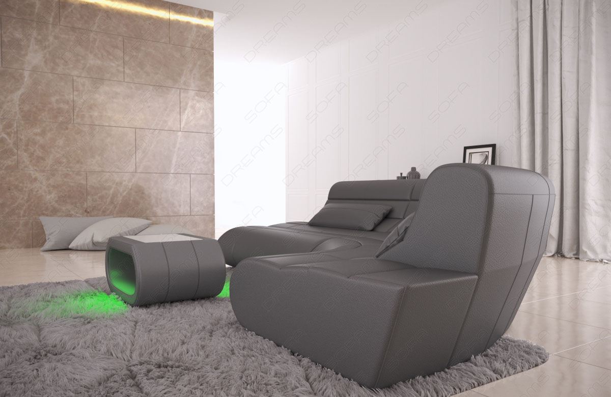 Are you looking for a leather sofa with a unique, personal design? The L-shaped Laguna Mini model impresses with its numerous attractive curves and a generous lying surface. Together with the elegant, curved armrests, it has a modern and dynamic appearance – perfect if you want to add stylish accents to your living room. The elegant leather seat covers can be selected from high-quality faux leather or genuine leather, as desired. Buffalo leather is also available as an option – a material with incomparable comfort and a particularly soft seating feel.
