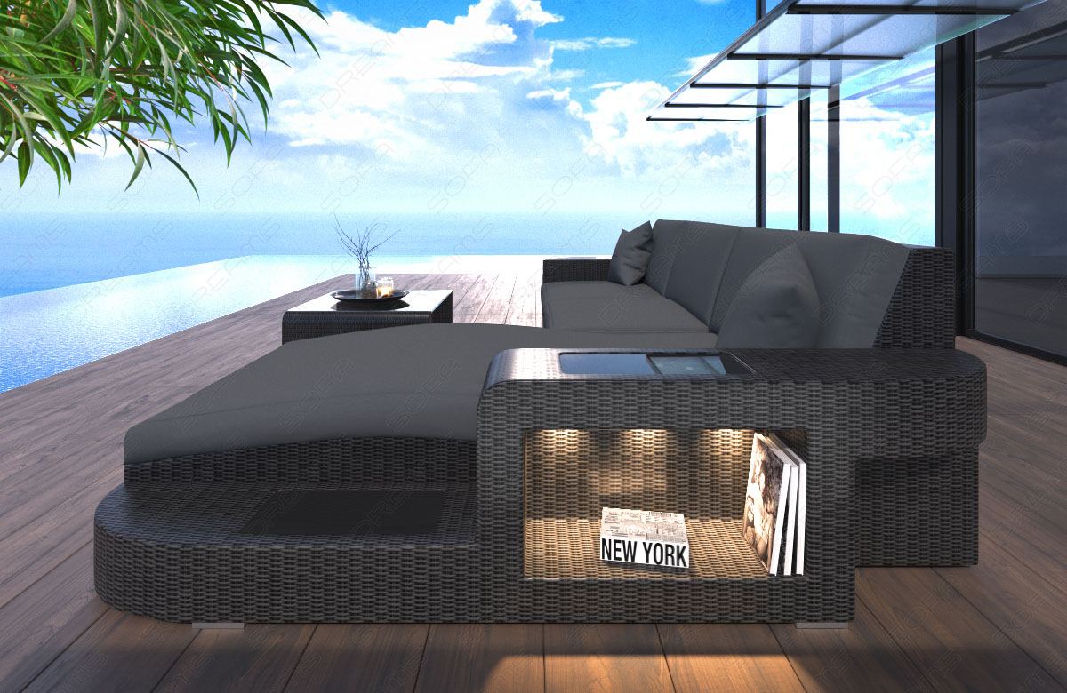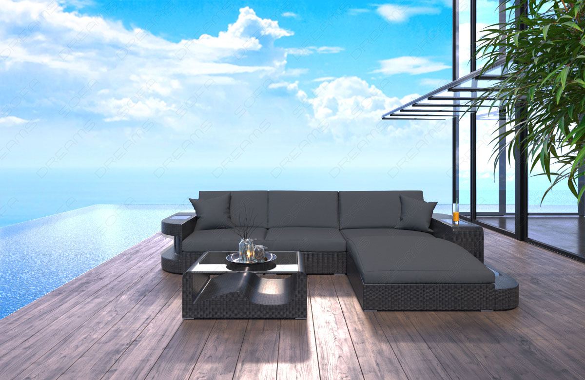 Designer Rattan Sofa Konstantin L-Shaped with LED Lighting and Cushions in Gray