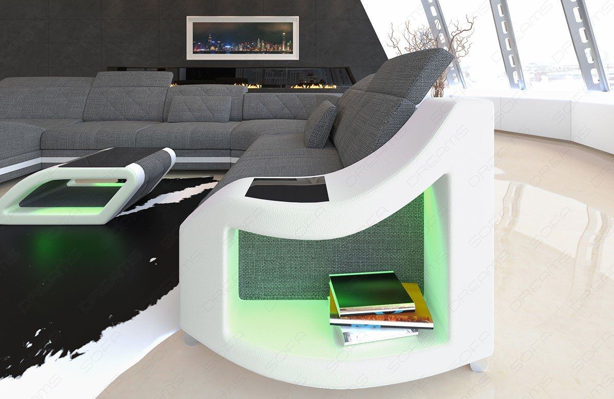 The Comfort XXL upholstered living area is the largest version of this series. There's truly room for everyone on this designer couch. Naturally, the XXL version also impresses with its attractive design. The Chesterfield pattern blends perfectly with the gentle curves of the couch, giving it an elegant aura. In terms of functionality, nothing is left to be desired. You can conveniently charge your mobile device via the integrated USB port. Your next evening in front of the TV is also well taken care of: thanks to the practical cup holders, your drink will always stay cool. The adjustable headrests ensure that you can make yourself particularly comfortable. With the LED lighting on the sides, your designer sofa is perfectly showcased, especially in the evening. The colors can be easily changed with the included remote control. In addition to the cup holders integrated into the long armrest, you have the option of ordering an inductive charging station, which, if selected, will also be installed in the long armrest.