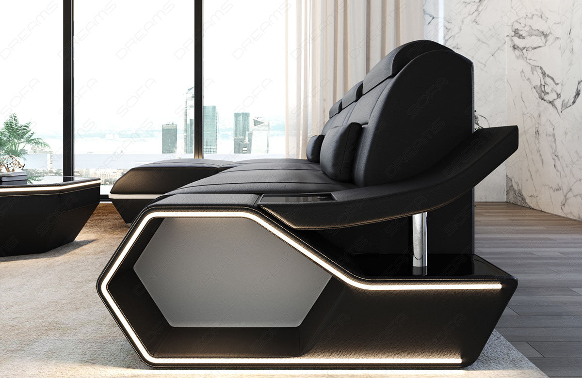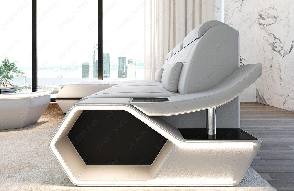 A special highlight of the Toscano sofa is its customization options. In addition to choosing the upholstery and ottoman orientation, the sofa can be equipped with various extras, such as a sleep function or additional USB ports . These options allow the sofa to be perfectly tailored to your needs and the available space.