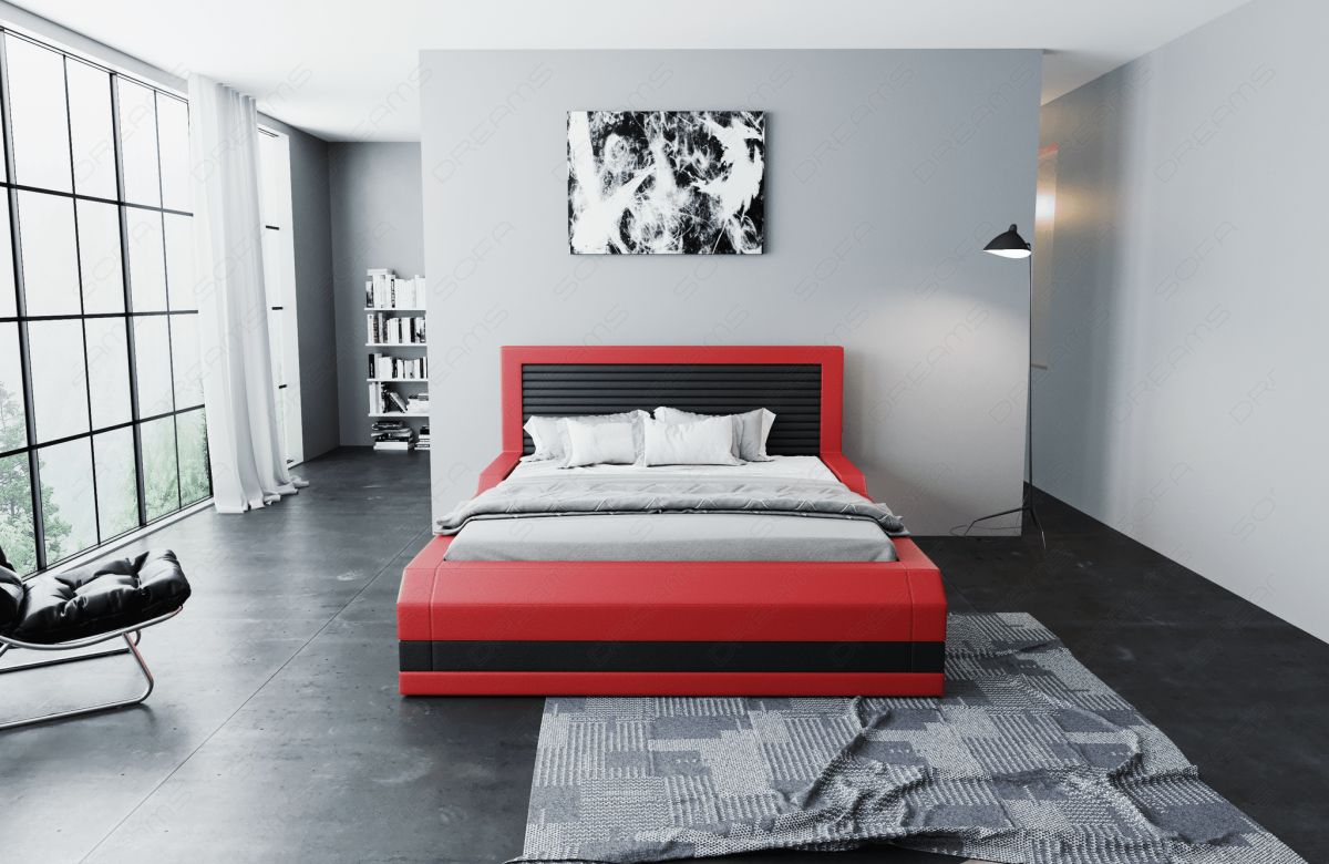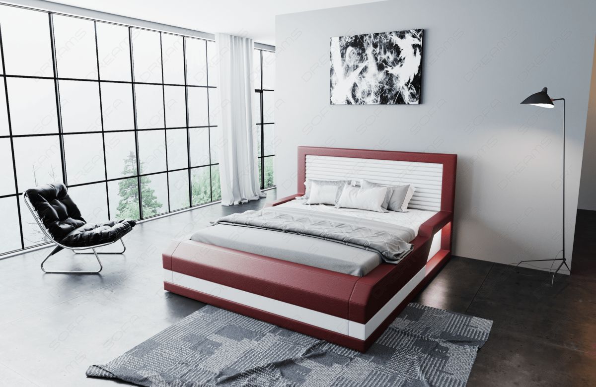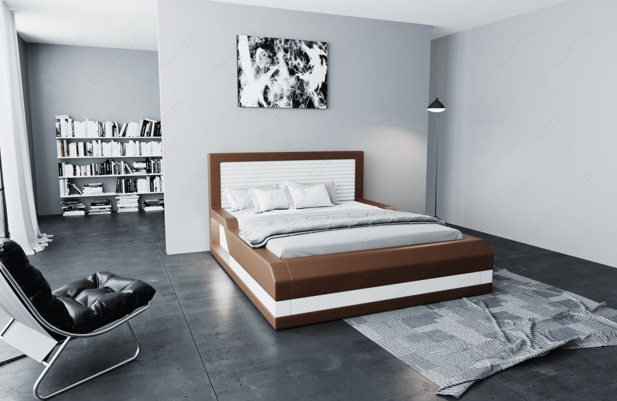 The Treviso waterbed impresses with its simple yet elegant lines and an attractively designed headboard, which is decorated with a frame. The LED lighting in the side boxes creates a pleasant, warm light, which provides orientation, especially at night, and creates a cozy atmosphere. Numerous color options are available. The headboard frame and body are in the main color, while the secondary color is used for the side boxes, the stripes, and the interior of the headboard.