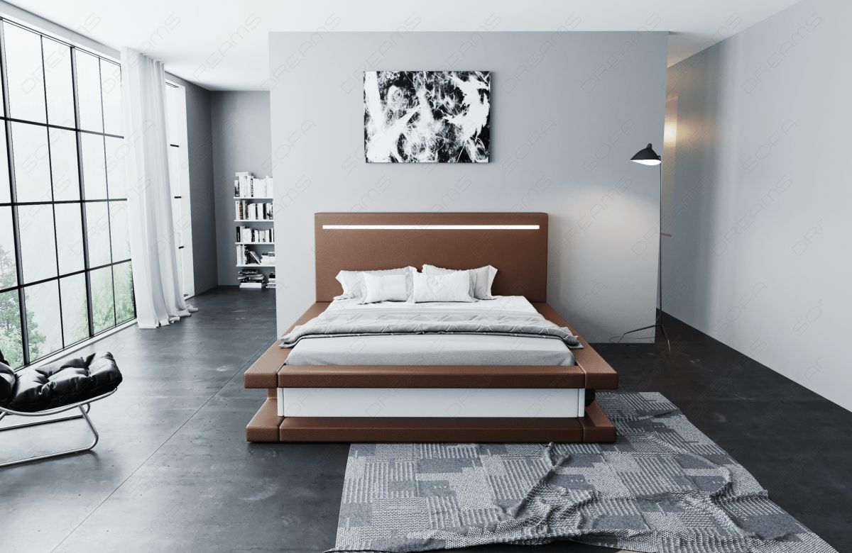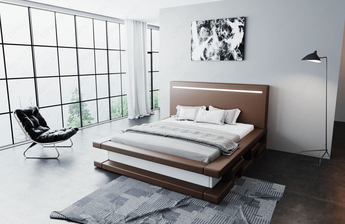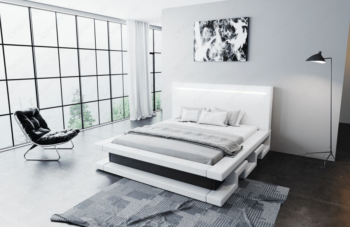 The Faenza waterbed impresses with its modern and innovative design. The side steps and the narrow LED lighting in the headboard give this model a stylish and sophisticated touch that will be an eye-catcher in any bedroom. The elegant faux leather cover with a soft textile back and fine leather grain ensures a luxurious look. You can choose the main color for the headboard and side panels, while the front box is made in a contrasting color.