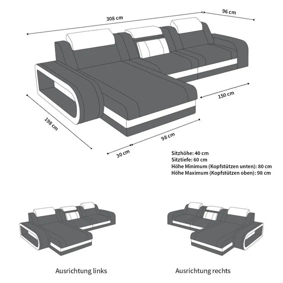 Robust construction: The 'Berlin' corner sofa was designed for a long service life. With a sturdy wooden structure and high-quality materials, you can be sure that this piece of furniture will bring you years of enjoyment.