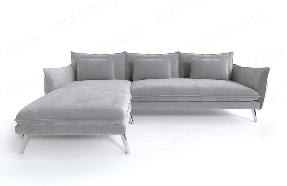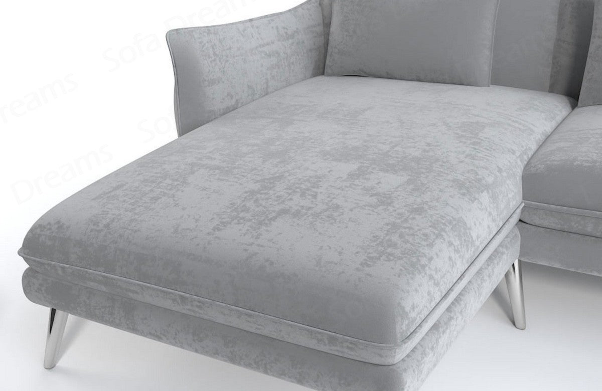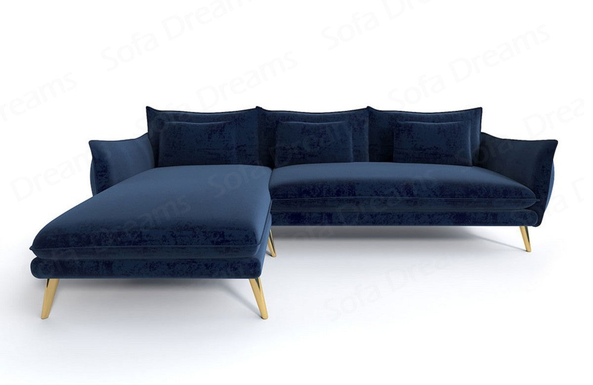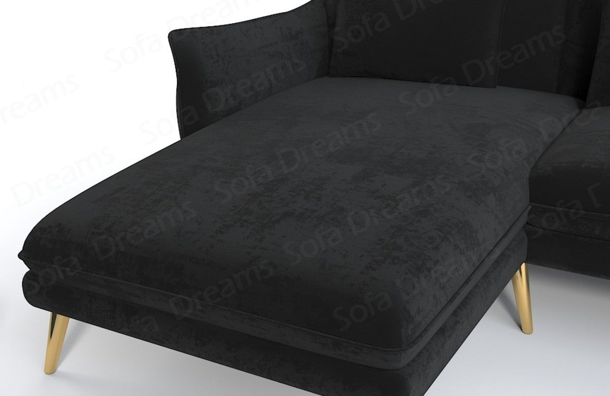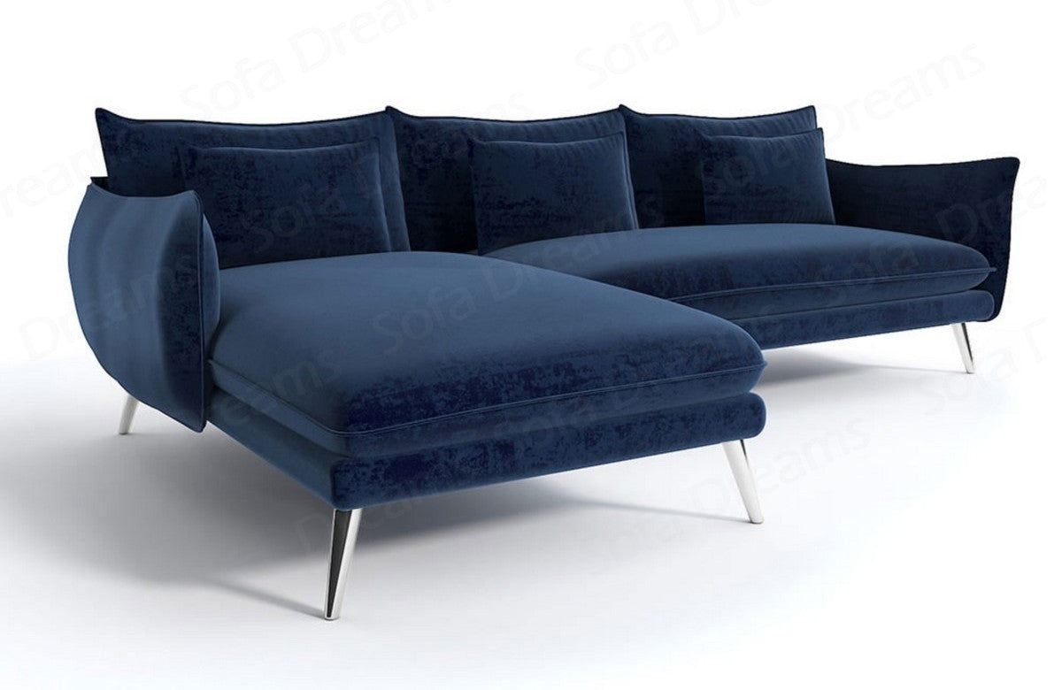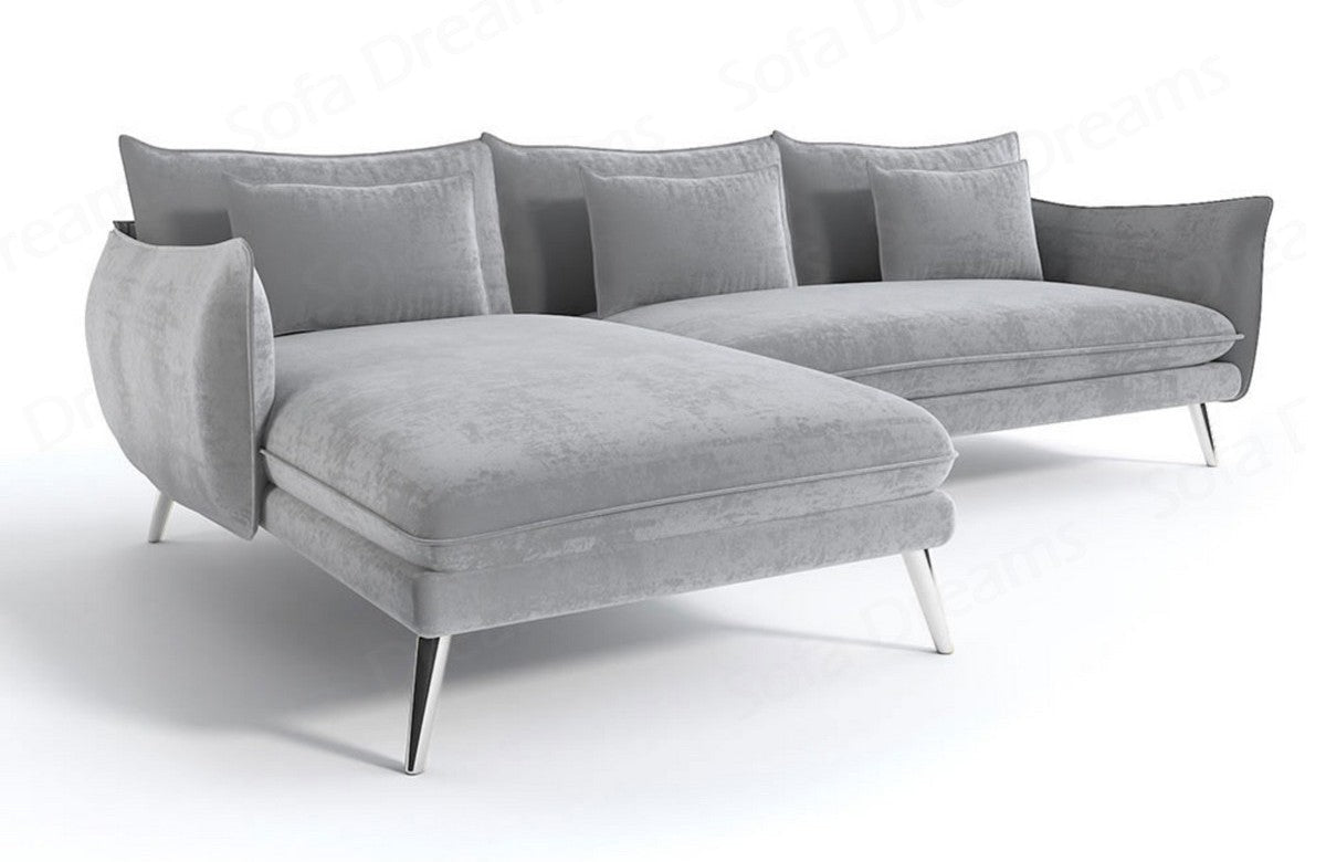 The velvet corner sofa Fuerteventura in L-shape (short) offers you an elegance corner couch with gold or silver sofa legs. It is also equipped with an ottoman, the orientation of which you can choose according to your preferences. The compact dimensions allow you to use the sofa flexibly in different room sizes. Create your own individual designer sofa according to your wishes. The first-class suspension not only ensures a high level of seating comfort, but also prevents deformation that can occur while sitting.