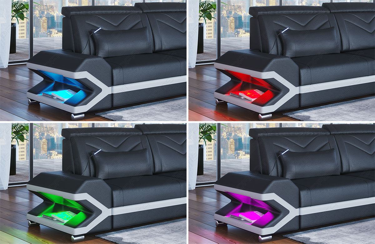 Apart from its attractive appearance, the Serano Mini L-Shaped Sofa also offers practical features that will enhance your home. The integrated LED lighting creates a welcoming atmosphere and can be individually adjusted to create the desired mood. The USB port allows you to conveniently charge your devices without having to get up.