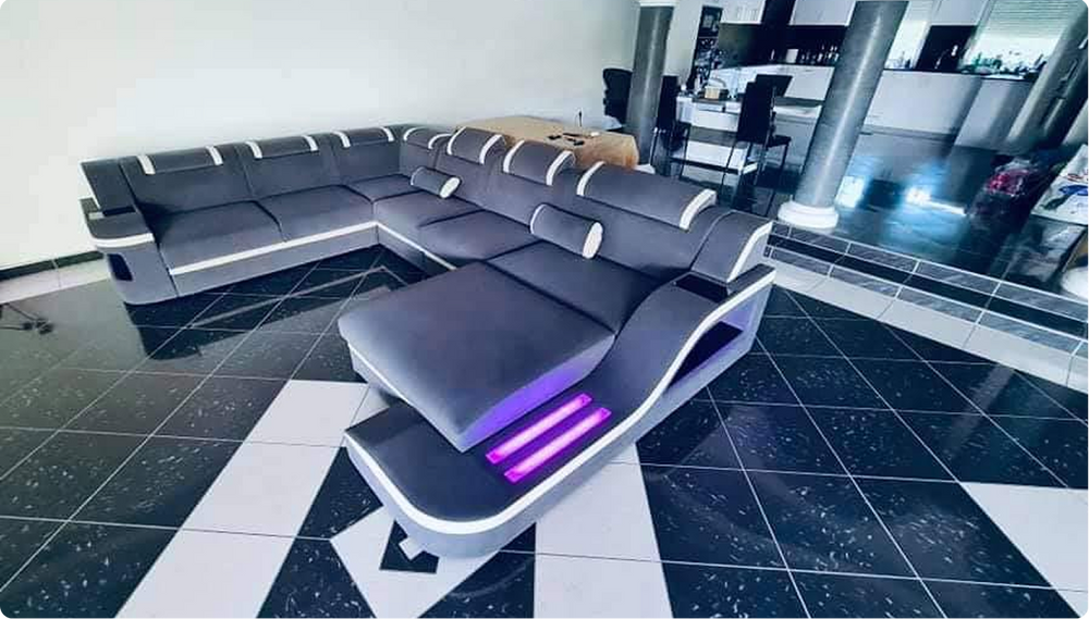 Sectional Comfort Leather Sofa With Lighting